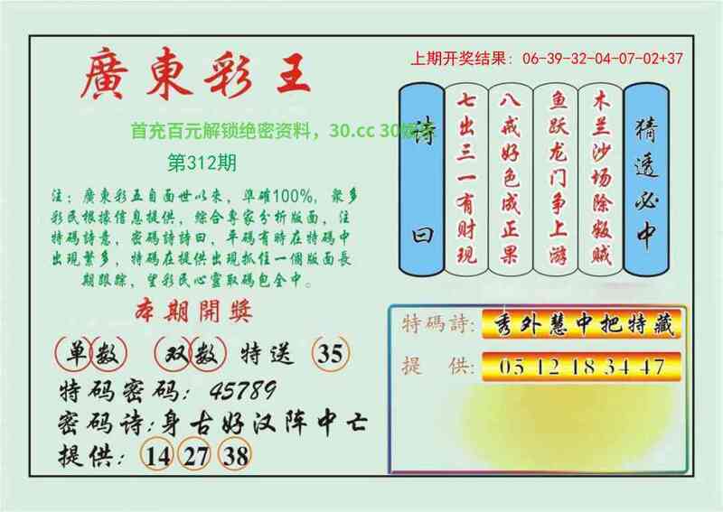 | 308期:冠军四头【1.2.3.4头】开:兔39准 |